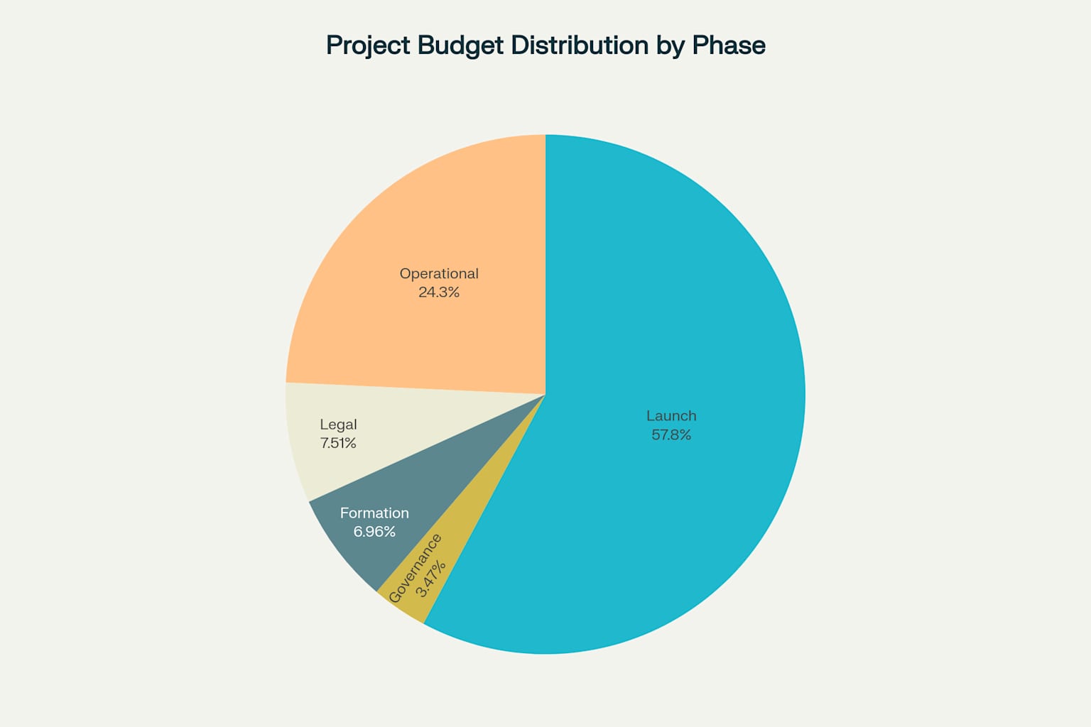| Launch & Programs | 22 weeks | $25,000 | 57.8% | Operations launch, fundraising events |